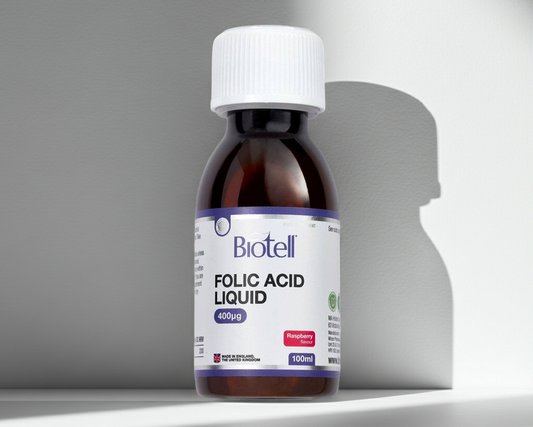 Biotell Folic Acid Liquid 400µg supports normal blood formation, immune function, and maternal tissue growth during pregnancy. Easy-to-take liquid formula.