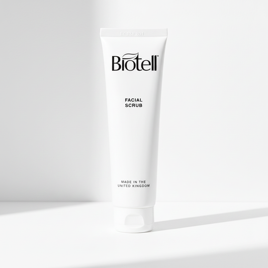 Biotell Facial Scrub is a gentle exfoliator containing salicylic, lactic and glycolic acids known to encourage skin clarity and brightness by preventing cell build-up. These acids are well known to lift excess oil, dead skin cells and unblock pores from dirt build-up.
