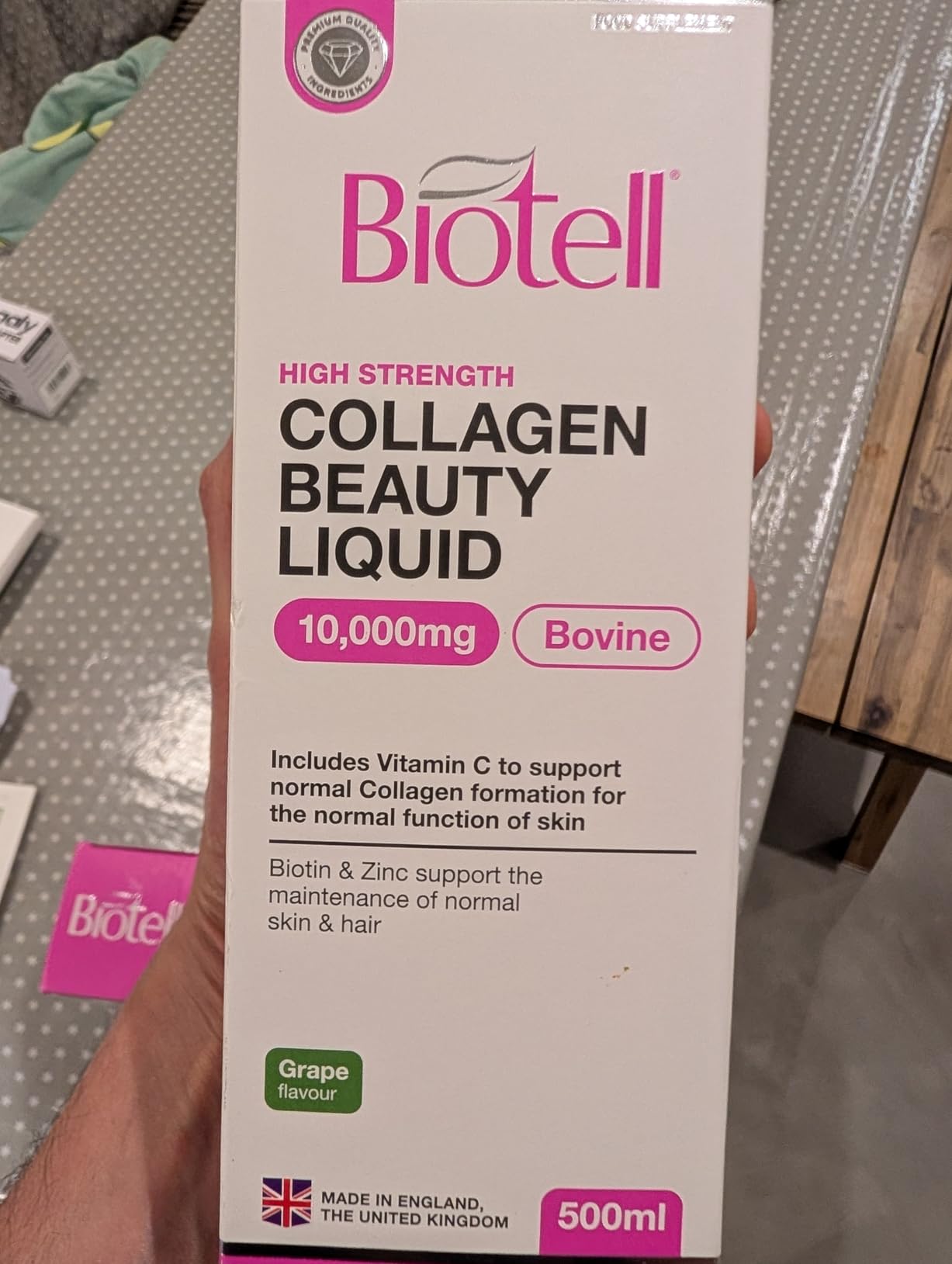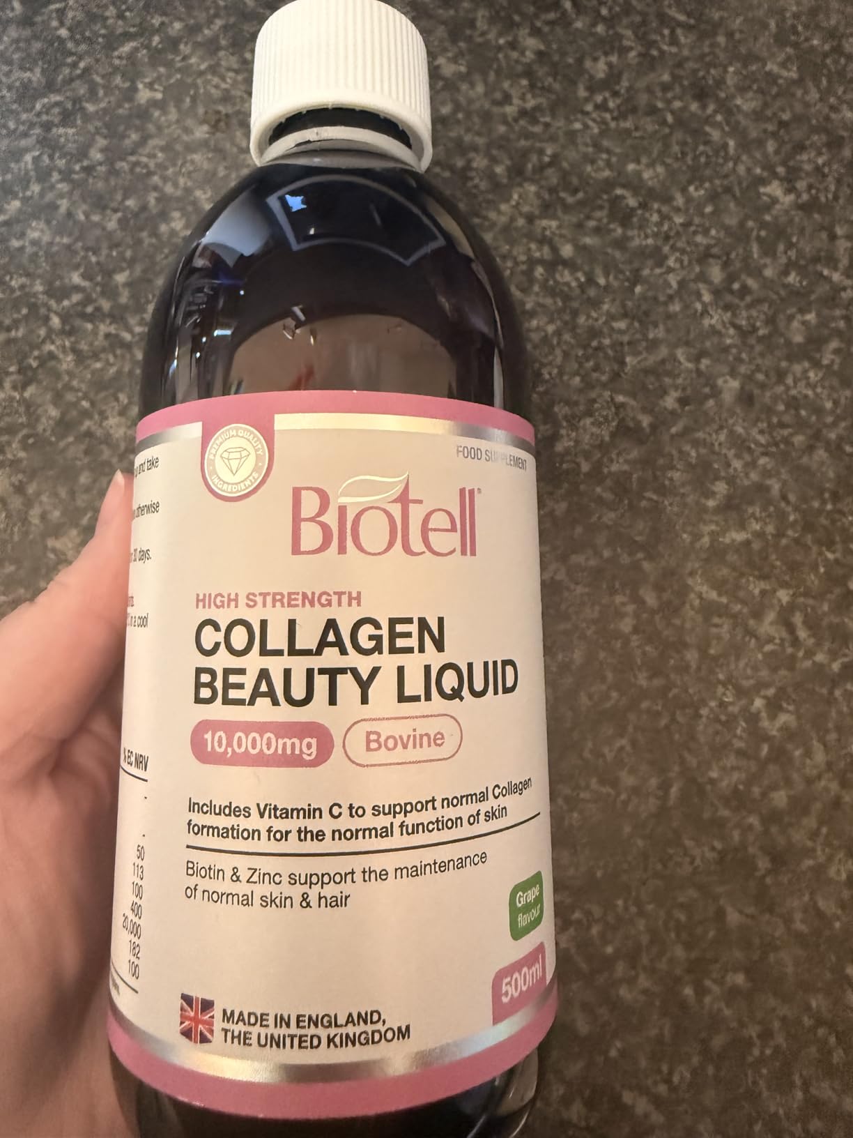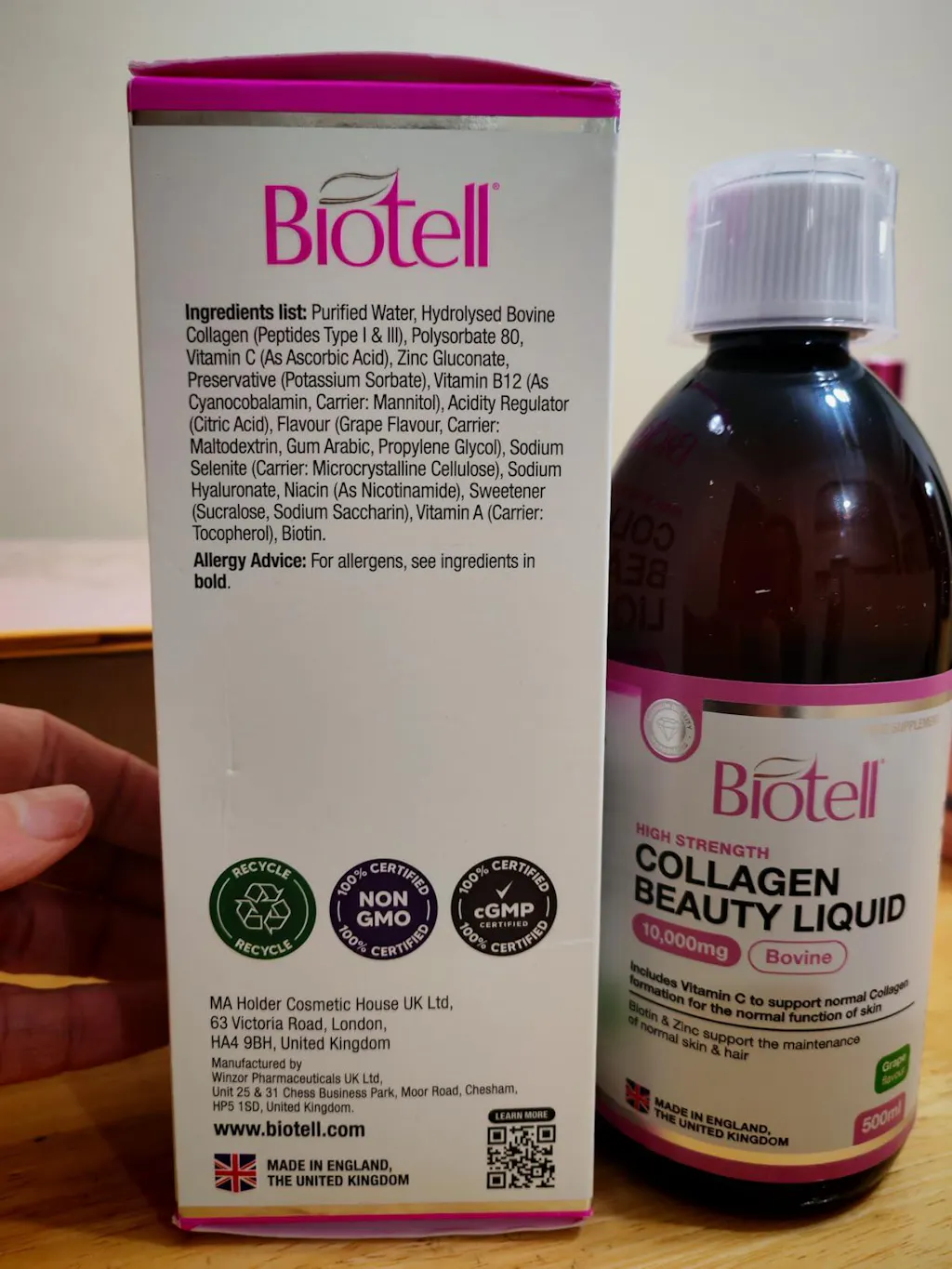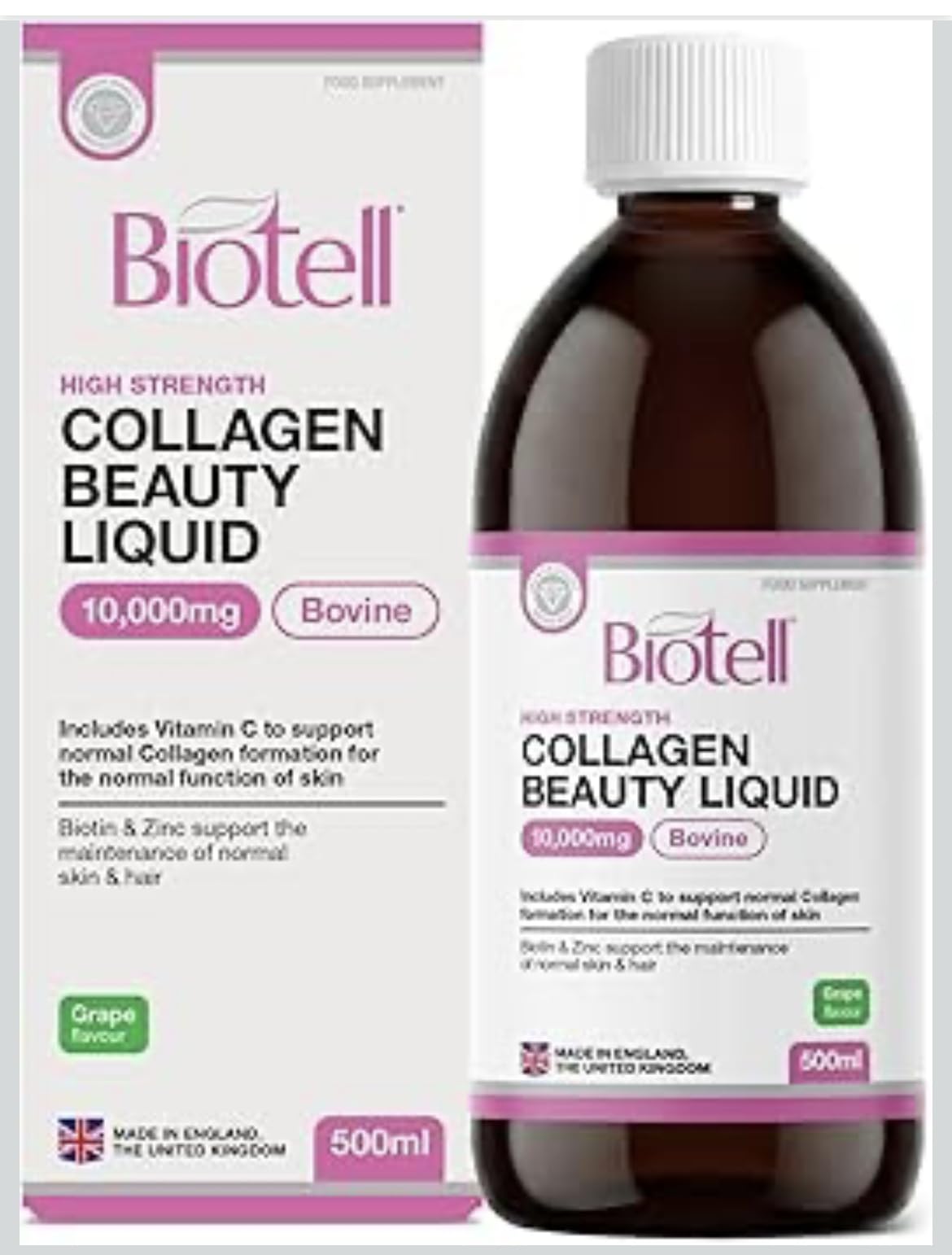 Very pleased to try this collagen.My wife has taken this supplement in a variety of different ways, and likes this grape flavoured option.Firstly, this is on the more expensive side. However, it is made but a UK based beauty company in the UK, and appears to be a high quality product.