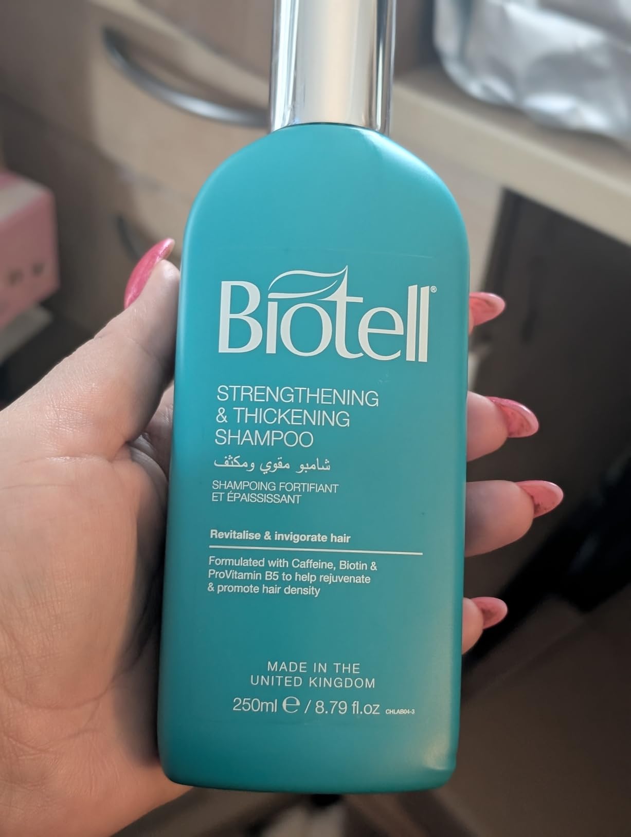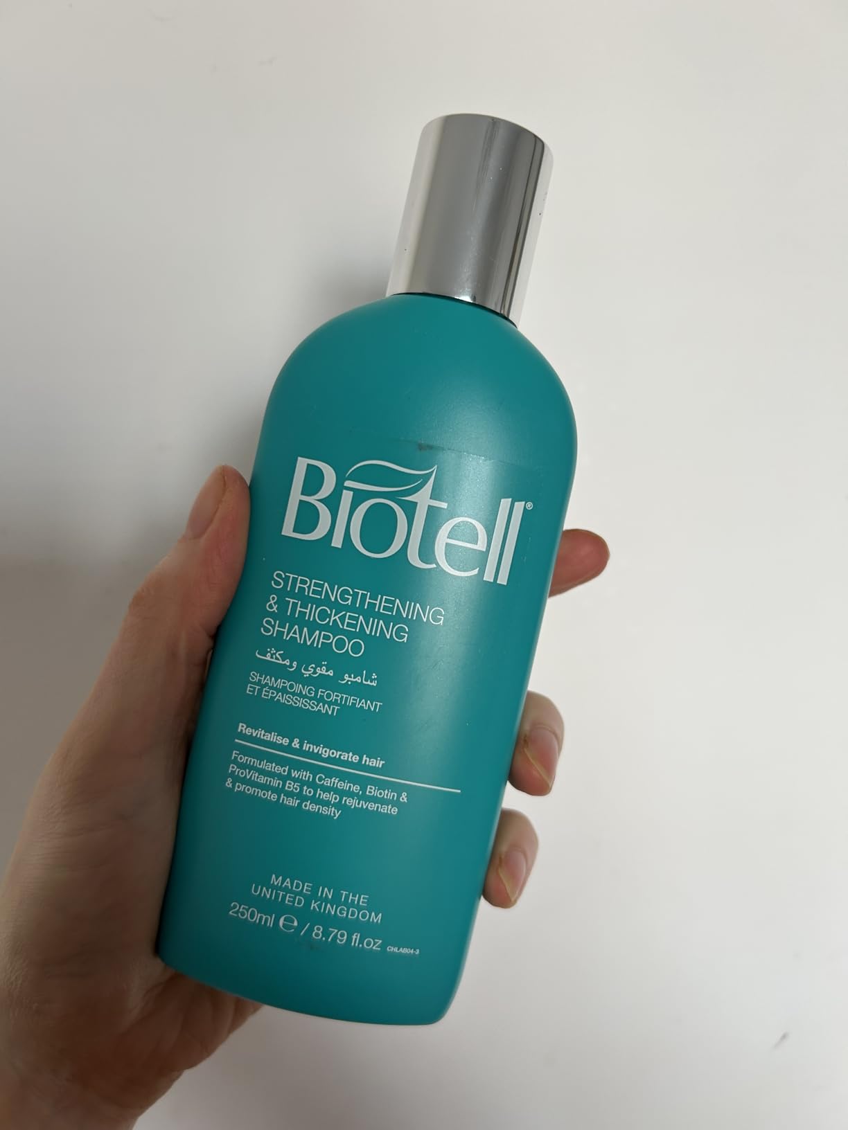 I’ve used a few Biotell products now and generally find them to be high-performing, so I had high hopes for this Caffeine and Biotin shampoo. Overall, it feels like a very "boutique" experience.First Impressions:The packaging is lovely—it’s a stylish 250ml bottle that looks great on the shower shelf. The shampoo itself has a really pleasant, clean scent that isn't too medicinal, which you sometimes get with "thickening" products.