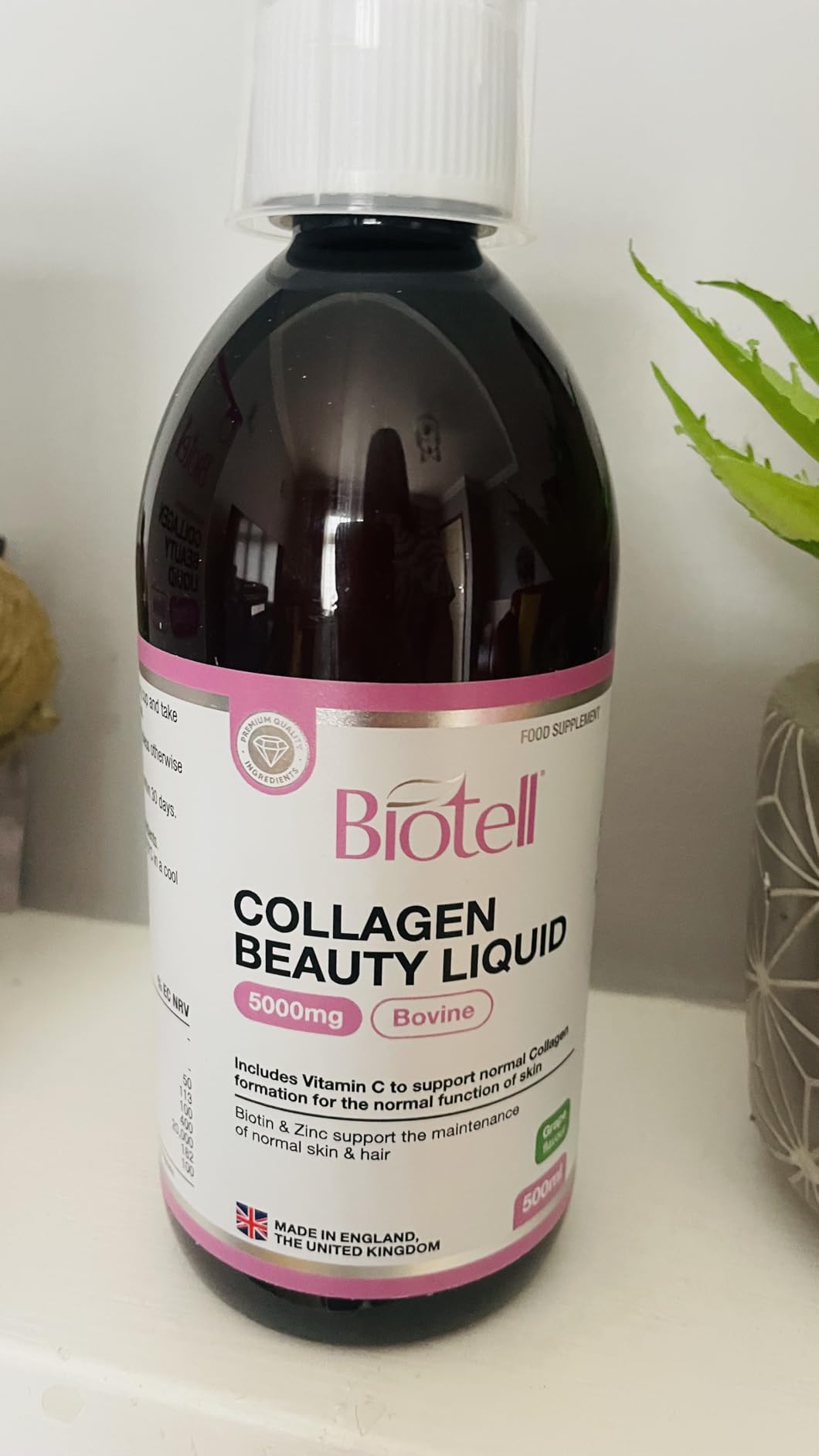 The product itself comes with a helpful measuring cup to take out any guesswork, and is a pleasant flavour.This collagen comes in a couple of different strengths - this is the lower at 5,000mg, which is therefore slightly cheaper. It also contains a number of other vitamins.Be aware that, after opening, you have to keep it in the fridge.My wife absolutely swears by collagen, and says that it helps with her hair and skin elasticity. This is a very pleasant way of taking it.Overall if you are looking for a high quality collagen supplement this is well worth your attention.
