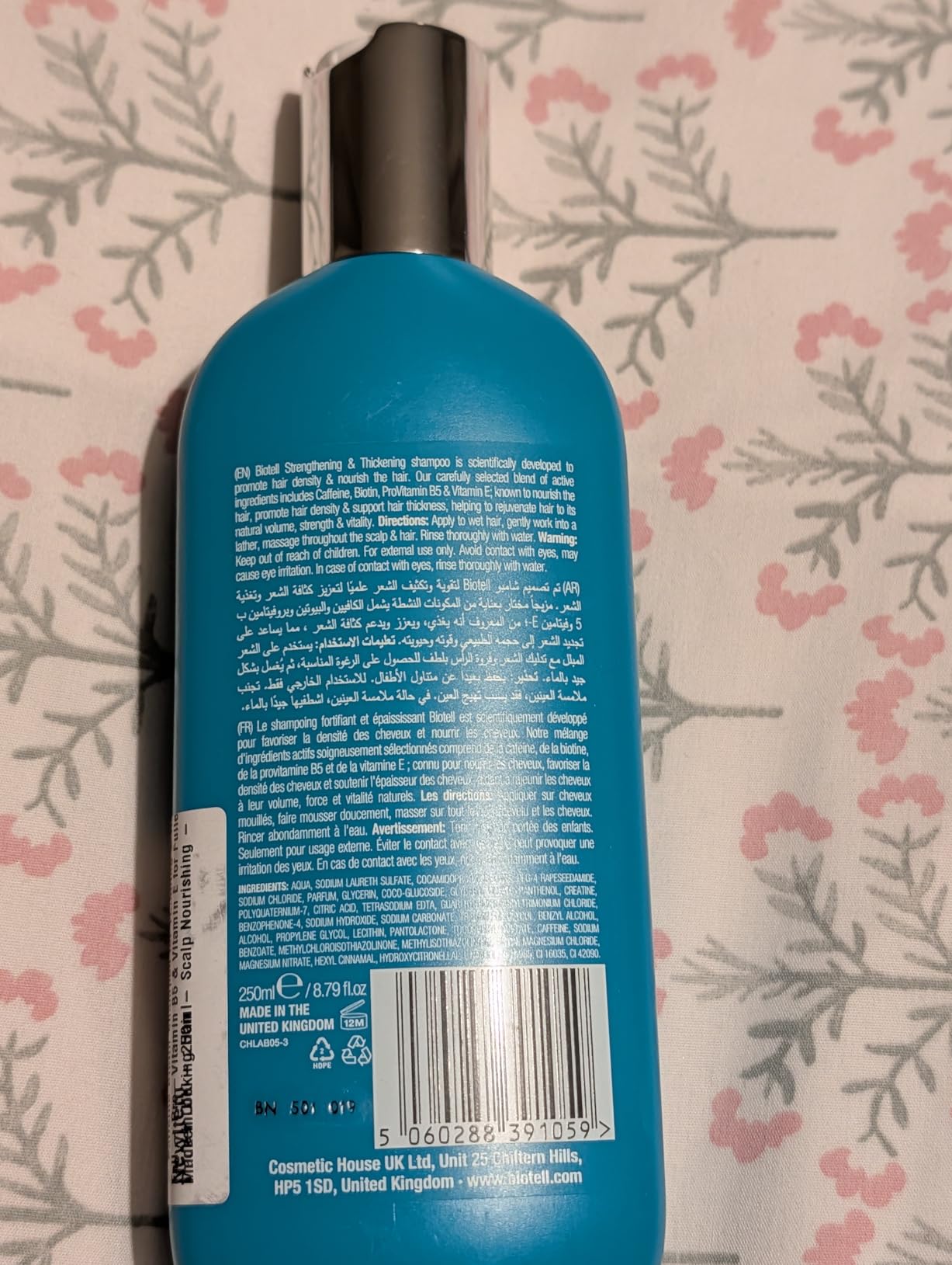 I recently ordered the Strengthening & Thickening Shampoo from Biotell, and I’m really impressed with how well it’s been working for my thinning hair. The shampoo arrived quickly and was securely packaged, so no issues there.The formula, enriched with caffeine, biotin, Pro Vitamin B5 (Panthenol), and Vitamin E, is really nourishing for both the scalp and the hair. I’ve been using it for a few days now, and I’ve already noticed a difference in the texture and fullness of my hair.
